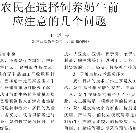 內容介紹:一、農民在選擇飼養奶牛前應注意的幾個問題 二、奶牛的品種特征 三、奶牛的行為習性 四、奶牛的飼料種類 五、奶牛的營養需要 六、奶牛的日糧配合 七、奶牛的飼養管理 八、奶牛的繁殖管理 九、奶牛的疾病防治 十、影響奶牛產奶量及原料奶質量的主要因素 哈哈,和大家分享以下王老師的資料,對王老師表示感謝!