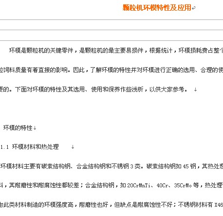 顆粒機(jī)環(huán)模特性及應(yīng)用 |