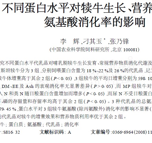 不同蛋白水平對犢牛生長、營養(yǎng)代謝及氨基酸消化率的影響 |