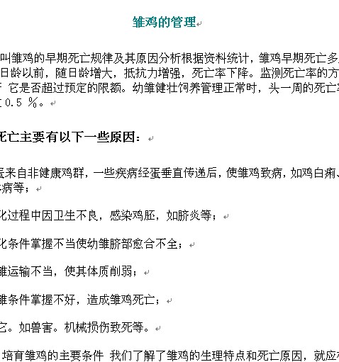 雛雞的管理. |