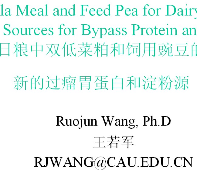 內容介紹:Canola Meal and Feed Pea for Dairy Ration, New Sources for Bypass Protein and Starch 奶牛日糧中雙低菜粕和飼用豌豆的應用,新的過瘤胃蛋白和淀粉源