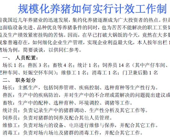 規(guī)模化養(yǎng)豬如何實(shí)行計(jì)效工作制 |