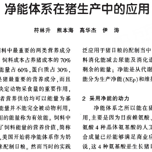 內容介紹:應用凈能體系設計豬的能量水平