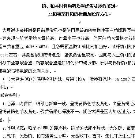 餅、粕類飼料原料質(zhì)量優(yōu)劣及摻假鑒別 |
