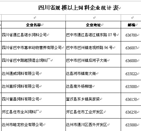 四川省規(guī)模以上飼料企業(yè).doc |