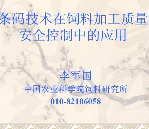 內容介紹:條碼技術在飼料加工質量安全控制中的應用 條碼技術介紹 飼料企業推廣應用必要性 飼料生產過程條碼控制與質量追溯系統 李軍國 中國農業科學院飼料研究所 010-82106058