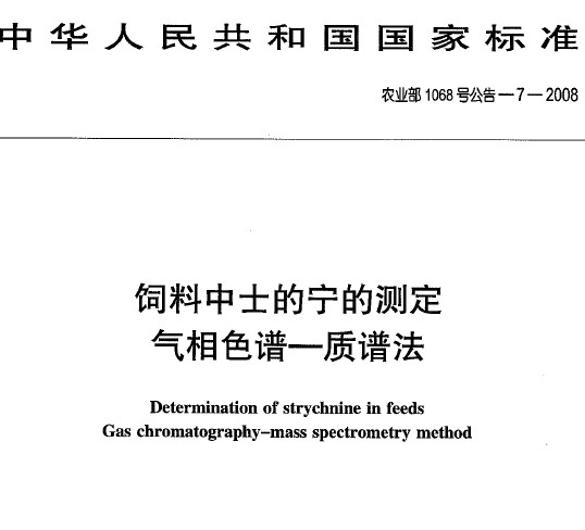下載地址:農業部1068號公告-7-2008 飼料中士的寧的測定 氣相色譜-質譜法