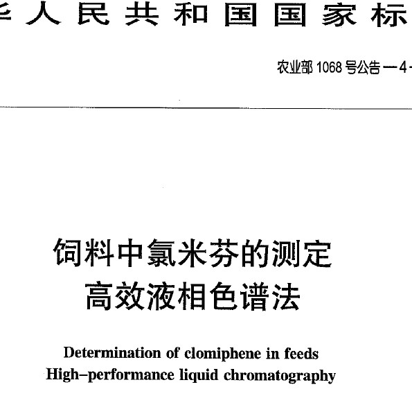 下載地址:農業部1068號公告-4-2008 飼料中氯米芬的測定 高效液相色譜法