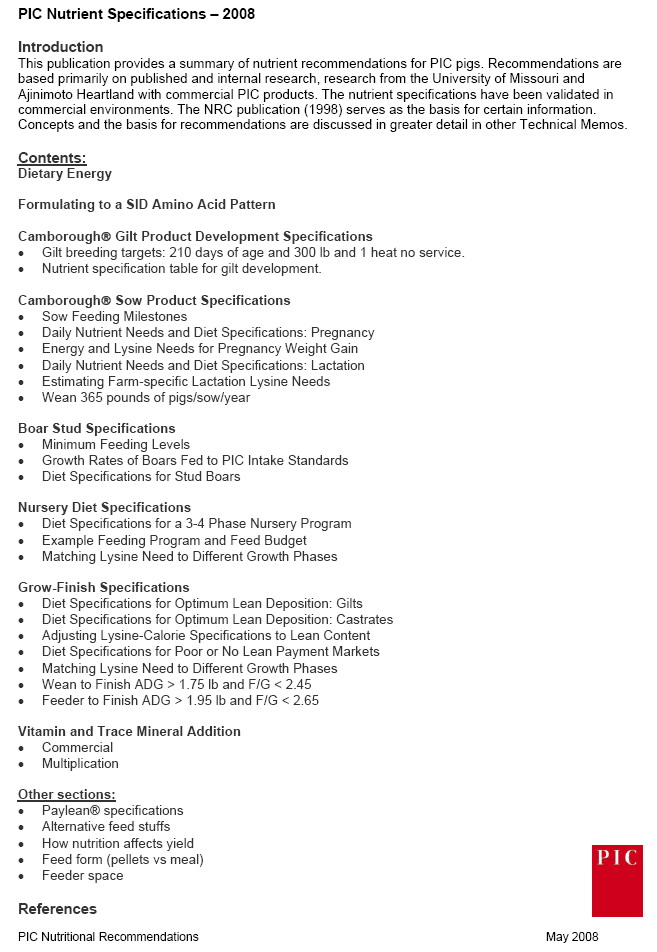 References下載地址: PIC Nutrient Specifications (PIC豬營養 2008)