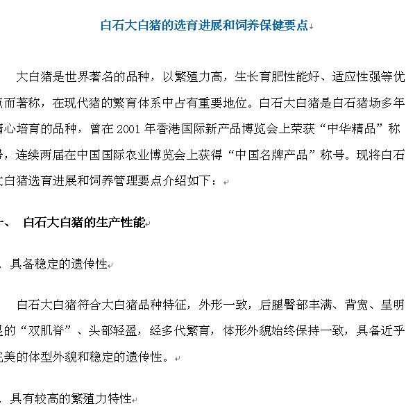白石大白豬的選育進(jìn)展和飼養(yǎng)保健要點(diǎn) |