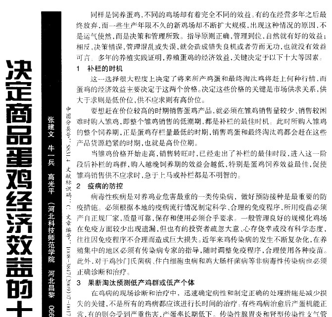 決定商品蛋雞經(jīng)濟(jì)效益的十大因素 |