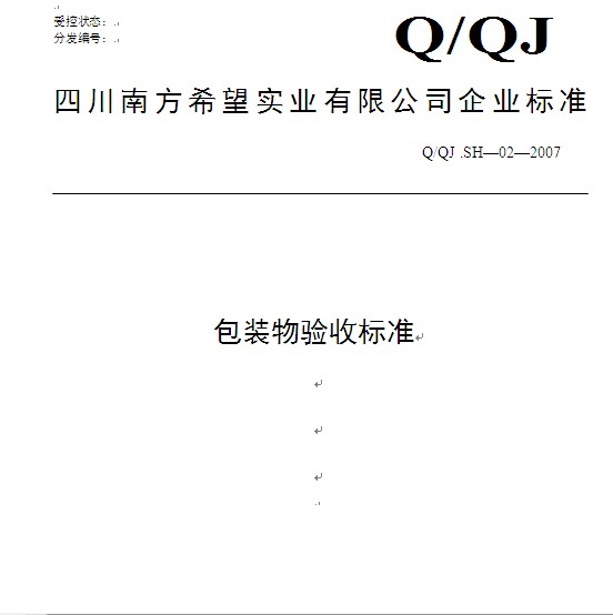 新希望包裝物驗(yàn)收標(biāo)準(zhǔn) |