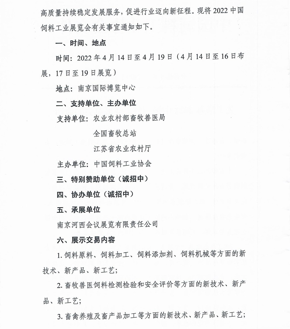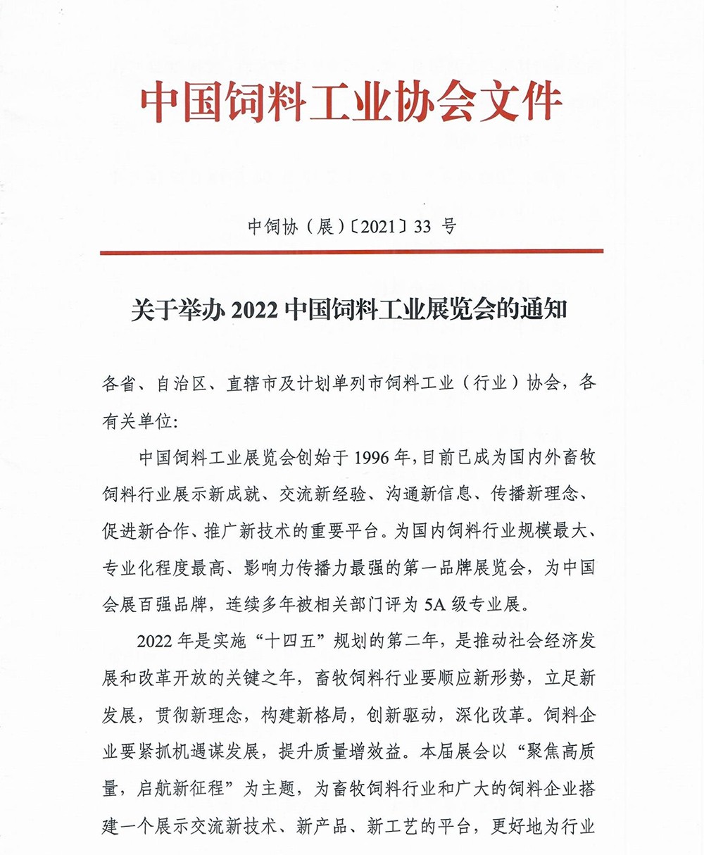 關(guān)于舉辦2022中國飼料工業(yè)展覽會的通知