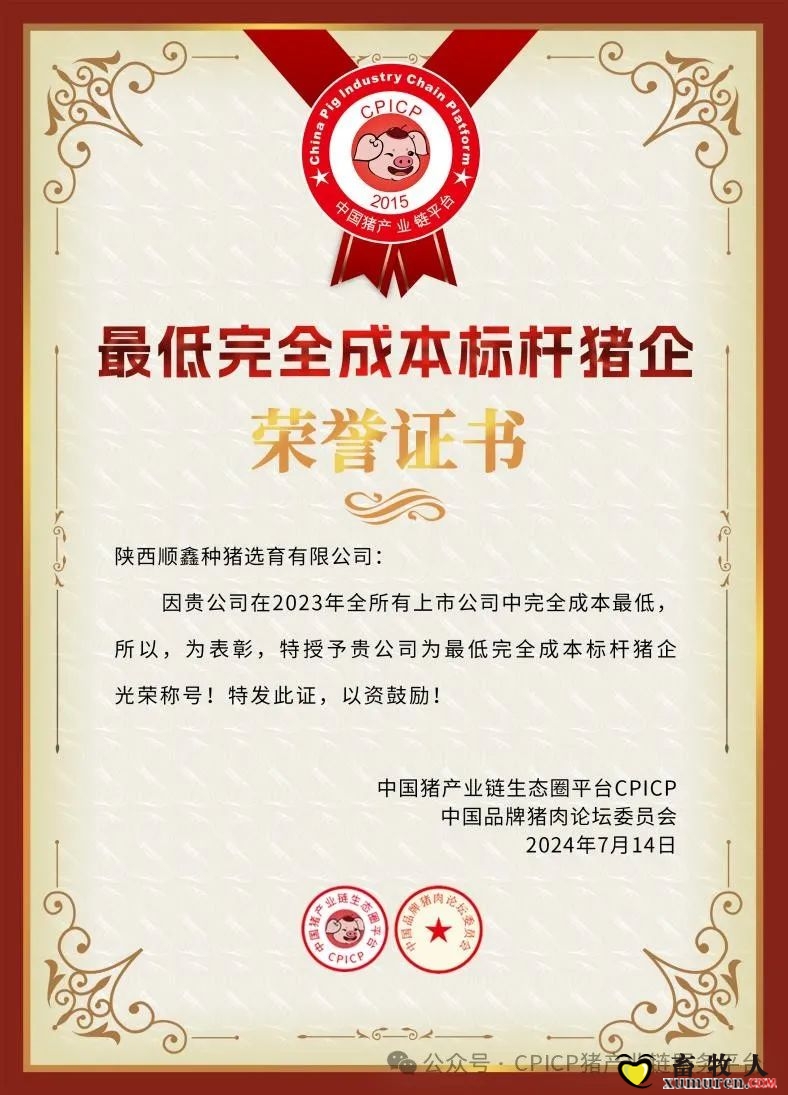 順鑫種豬公司2023年完全成本6.4元以下,高產母豬和藍耳抗原抗體雙陰種豬,國家級藍耳非免疫凈化場!正能農牧公司1、可借鑒的機制:分段核算、自我進化、對標找差、持續改進;2、獲得的效率:母豬端PSY30,育肥料肉比2.39:1;3、階段性成果:從養豬能力評價,正能農牧公司標桿場最新豬苗完全成本305元/頭,肥豬完全成本6.84元/斤;順鑫種豬公司和正能農牧公司值得我們行業學習和交流。而本次“CPICP最低完全成本標桿豬企(漢中站)、就是來向順鑫種豬公司和正能農牧公司取經的!生豬產業企業高管等行業意見領袖代表齊聚一堂,共同探討生豬產業高質量發展之道。