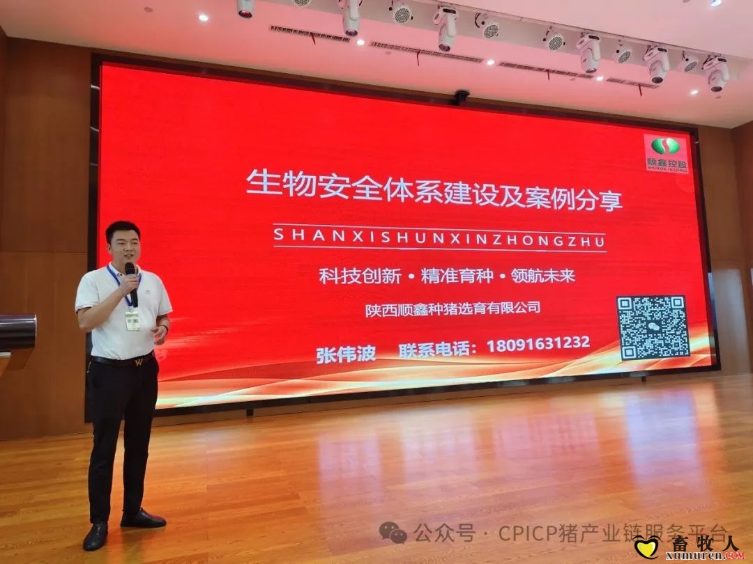 順鑫種豬公司張偉波副總經理深入探討了生物安全體系在養豬業中的重要性,并分享了陜西順鑫在疫病凈化和生物安全管理方面的豐富經驗。