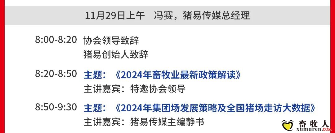 豬易 2024 生豬產業(yè)數(shù)據(jù)大會將為您揭曉答案!在這里,您將獲得最前沿的市場分析、最實用的成本控制策略以及最具前瞻性的行業(yè)發(fā)展洞察,為您在未來的養(yǎng)豬業(yè)競爭中搶占先機、穩(wěn)健前行提供有力的支持和指引。