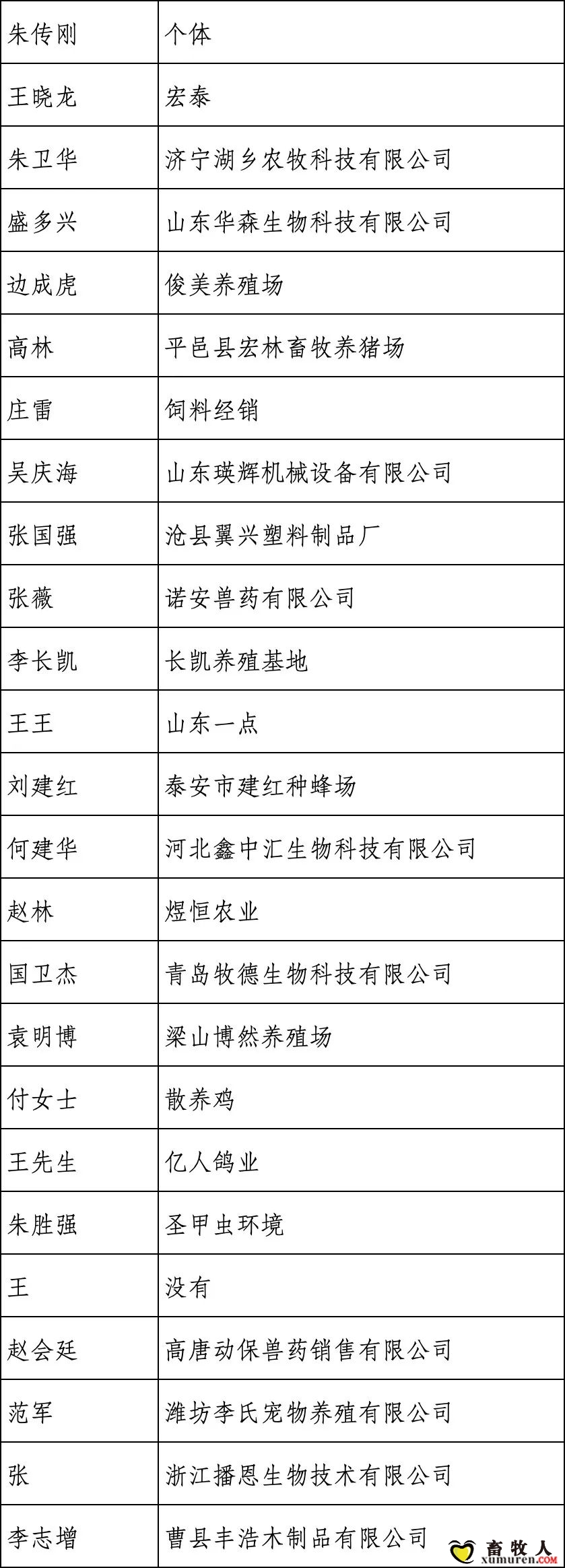 | 王俊榮 | 招遠 | 招遠市康牧獸藥飼料服務有限公司 | ||||
