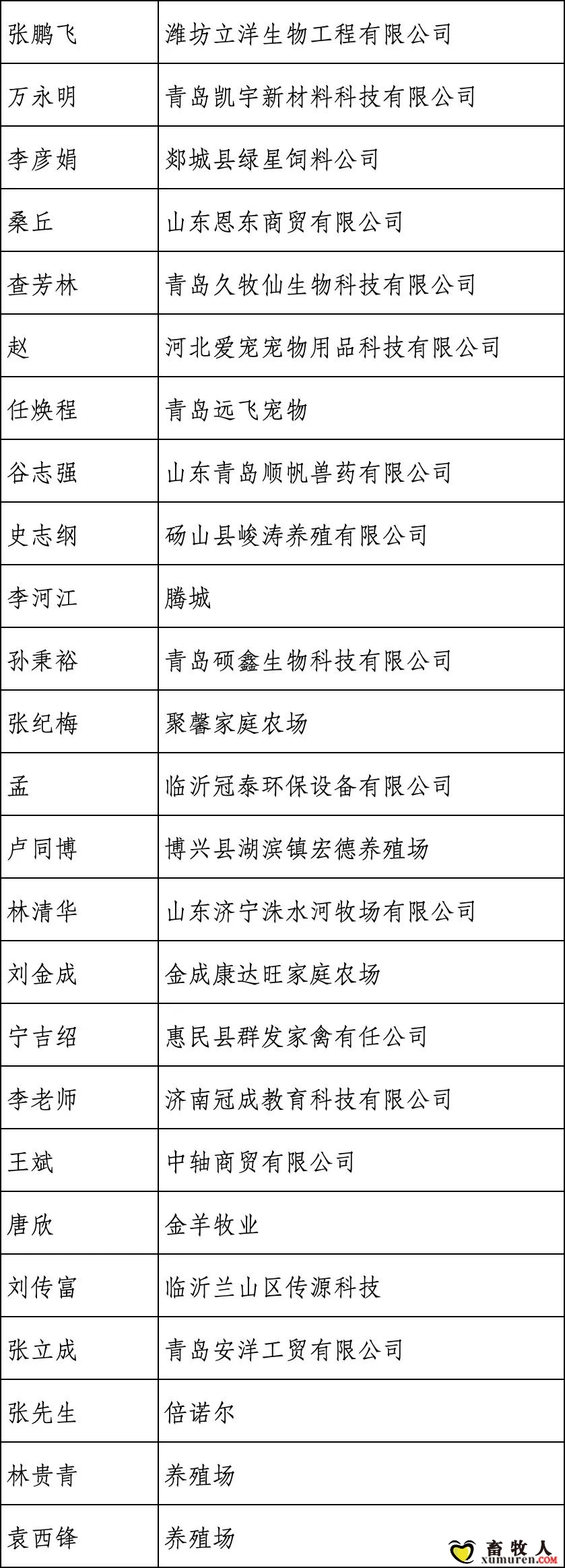 | 尹福平 | 即墨區 | 青島中根牧業有限公司 | ||||