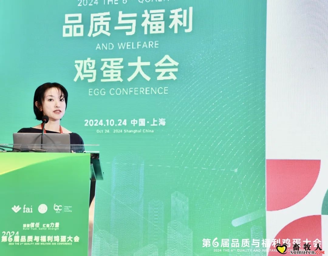 福田女士在演講中重點討論了動物福利在日本的發展,特別是非籠養雞蛋的推廣。她介紹了動物福利企業合作伙伴(AWCP)的活動,強調該組織在推動動物福利和非籠養養殖方面的努力。福田女士指出,從2016年至2023年,日本的非籠養雞蛋推廣經歷了多個關鍵階段,包括西方公司的承諾和日本企業動物福利政策的啟動。她提到,AEON公司自2021年起在全國范圍內推廣非籠養雞蛋,并成功實現銷售增長。此外,Barilla和McDonald's也分享了應對非籠養雞蛋額外成本的策略,如與生產者簽訂長期合同和優化供應鏈。福田女士還強調了日本企業在動物福利方面的承諾與目標,特別是Kewpie公司計劃在未來幾年內顯著提高非籠養雞蛋的使用比例,展現出行業朝向更高動物福利標準的積極轉變。