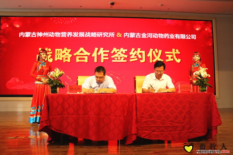 會議期間還舉行了內(nèi)蒙古神州動物營養(yǎng)發(fā)展戰(zhàn)略研究所與內(nèi)蒙古金河動物藥業(yè)有限公司戰(zhàn)略合作簽約儀式。