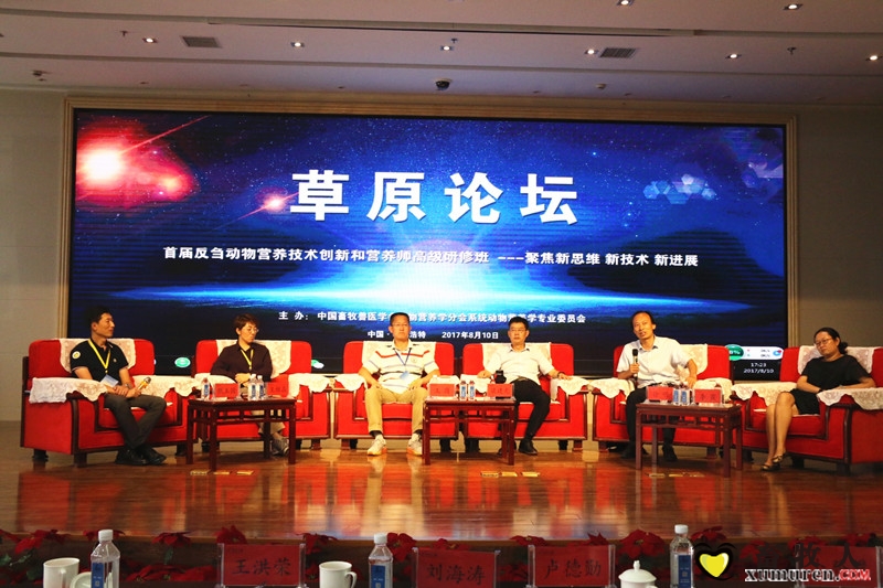 2017年8月10日上午8:50,由中國畜牧獸醫(yī)學會動物營養(yǎng)學分會系統(tǒng)動物學專業(yè)委員會主辦,內(nèi)蒙古神州動物營養(yǎng)發(fā)展戰(zhàn)略研究所、 畜牧人網(wǎng)站和金河動保網(wǎng)共同承辦的首屆反芻動物營養(yǎng)技術創(chuàng)新和營養(yǎng)師高級研修班在呼和浩特隆重開班,內(nèi)蒙古農(nóng)牧業(yè)科學院盧德勛研究員、系統(tǒng)動物營養(yǎng)學專業(yè)委員會主任、揚州大學王洪榮教授、內(nèi)蒙古農(nóng)業(yè)大學獸醫(yī)學院劉大程教授、中國農(nóng)科院北京畜牧獸醫(yī)研究所卜登攀研究員、中國農(nóng)業(yè)大學王雅晶博士、吉林農(nóng)業(yè)大學甄玉國教授、內(nèi)蒙古農(nóng)牧業(yè)科學院胡紅蓮研究員、內(nèi)蒙古金河動物藥業(yè)有限公司總經(jīng)理路赟先生、中荷奶業(yè)發(fā)展中心經(jīng)理劉凱先生、北京九州大地技術品控總監(jiān)王崗先生、奶牛營養(yǎng)師梁建光博士等專家領導及嘉賓出席了研修班開班儀式、來自牧場、業(yè)內(nèi)同仁共200多位參加了此次研修班。畜牧人網(wǎng)站張妍主持了會議開幕式!